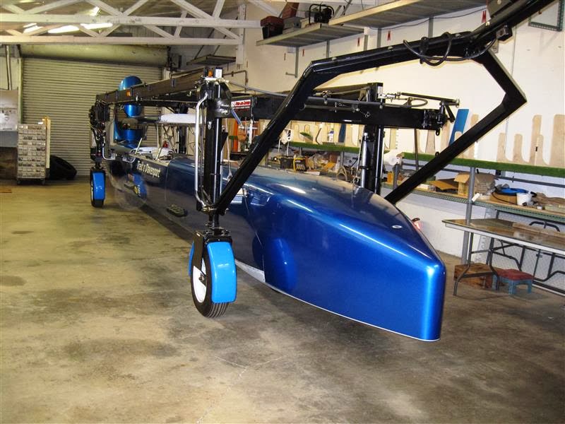 This is a planned stop so that I could visit the shop of a Bonneville racer. Marlo has been building a streamliner that is designed to be the fastest wheel drive car in the world – 550 MPH target. He has an amazing website (link). That website documents, in great detail, a project that was started over 14 years ago. I was involved in the early stages of the project when I was with Gates. We worked out the details of both the blower drives as well as the traction drives. The car has four wheel drive with a common drive shaft. The two blown alcohol engines are connected to the drive shaft via two unique belt drives.