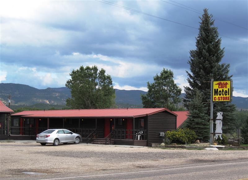 Today we drove through the rest of the park including the huge tunnel with windows cut into the side of the mountain.  We got a bit of a late start and did not want to short our visit to Bryce.  Thus we decided to try to find a place to stay in this rather sparsely populated part of Utah.  We finally settled on this small motel in Hatch (see photo).  It is not much to write home about, but it will serve the purpose.  The motel is part of a complex of businesses and is called Hatch Station (map).