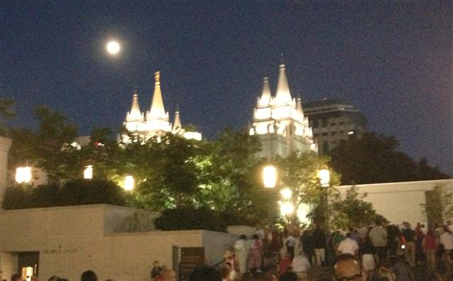 We also got to attend a very special Mormon Tabernacle concert. The performance included both the choir and and orchestra as well as two extremely talented guest artists:  Nathan Pacheco and Lindsey Stirling.  The concert is free, but you need to order tickets early.  Words can’t describe how amazing the concert was!!  Then to top it off when we came out, the full moon was right over the beautiful spires in Temple Square (see photo).