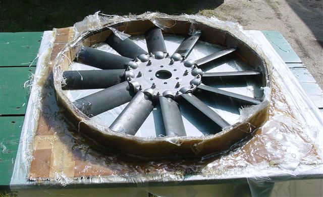 I mentioned that I had been working on a problem with the bus. It is not a huge problem, but my charge air cooler air flow is not what it should be and it allows the air entering the engine to get hotter than I would like. I built/installed a hydraulic fan system before this trip. That should have solved the problem, but it did not. I have been working with the fan blade supplier and he said that I must have a shroud to make the fan work properly. So, I fabricated one out of fiberglass in the campground (see photo). The photo shows the raw shroud with the fan. I wrapped the fan with cardboard to get the best fit I could, given the situation. The shroud doesn’t look all that impressive, but once I got it trimmed up, it looked pretty good. That did not solve the problem completely, so I am doing some more system analysis and working with both the fan manufacturer and the pump/motor manufacture.