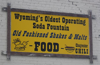 Chugwater is much like most small towns – dying. Kind of reminds us of Prescott. However, as I walked around, I saw the sign shown below. No question about it, we had to eat there. We talked at length with the owner and she said that while the rest of the town was mostly shut down, her business is doing very well. There was a couple in the “soda fountain” that had lived in Chugwater all their lives (at least 70 years) and they remembered the great meat store and talked about all of the gas stations, stores, etc. that existed before the interstate went around the town.